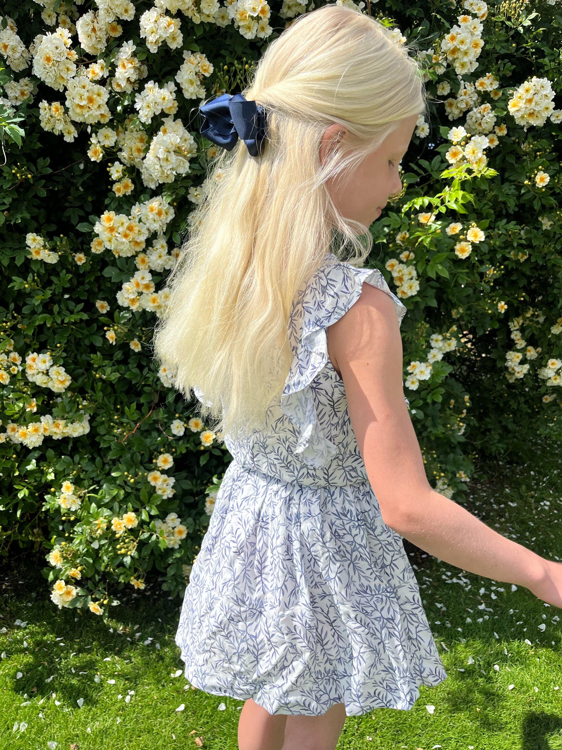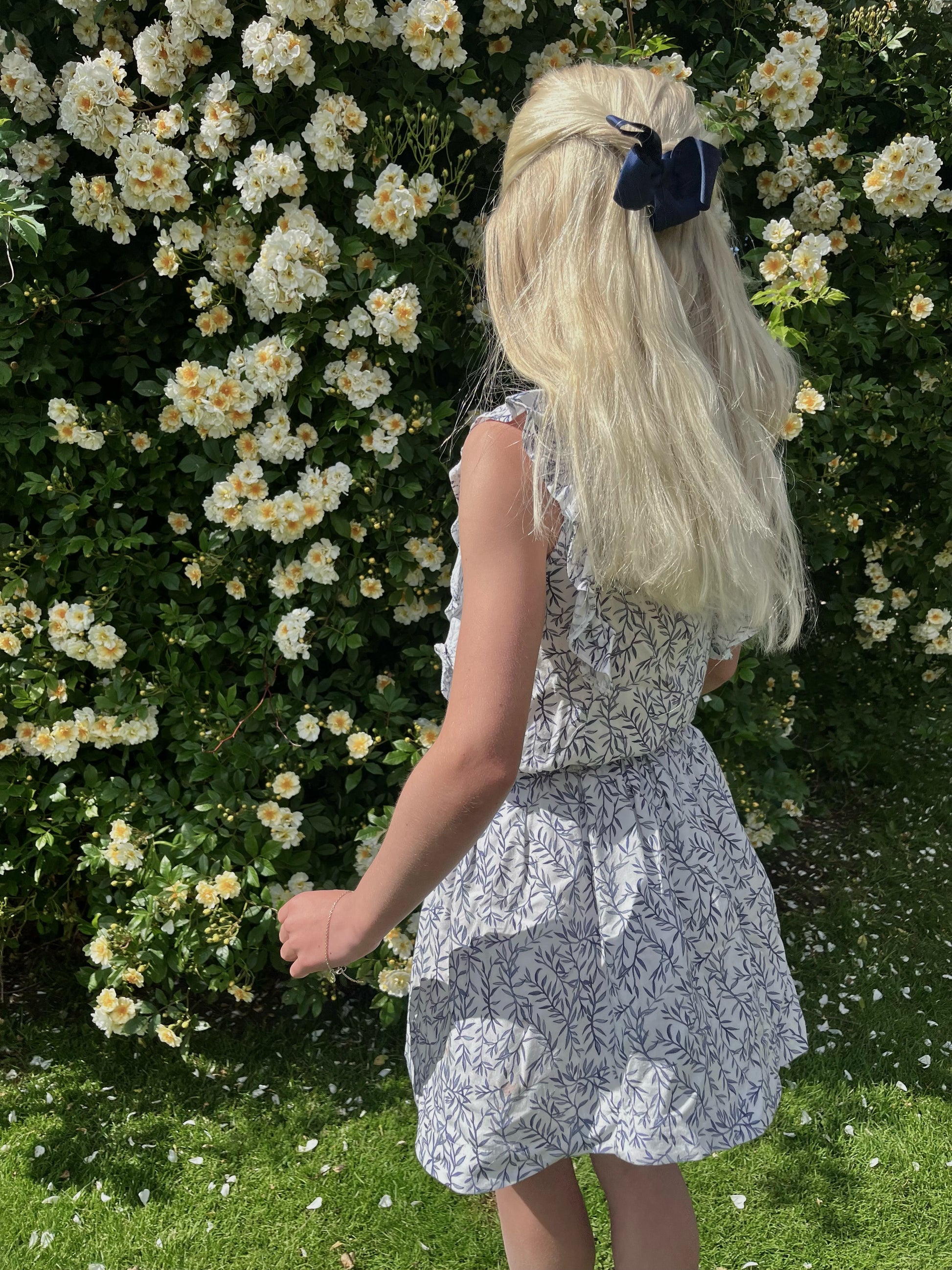 A-line shaped skirt with a nice fall in woven fabric with elastic and wrinkles in the waistband.