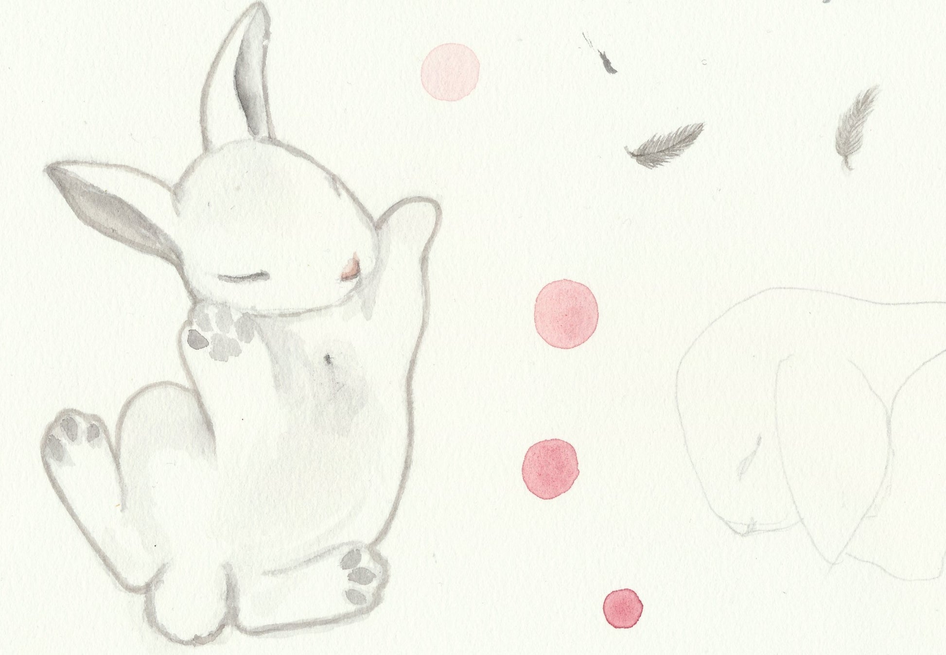 - The print is hand-painted in watercolor and depicts the rabbit Peggy