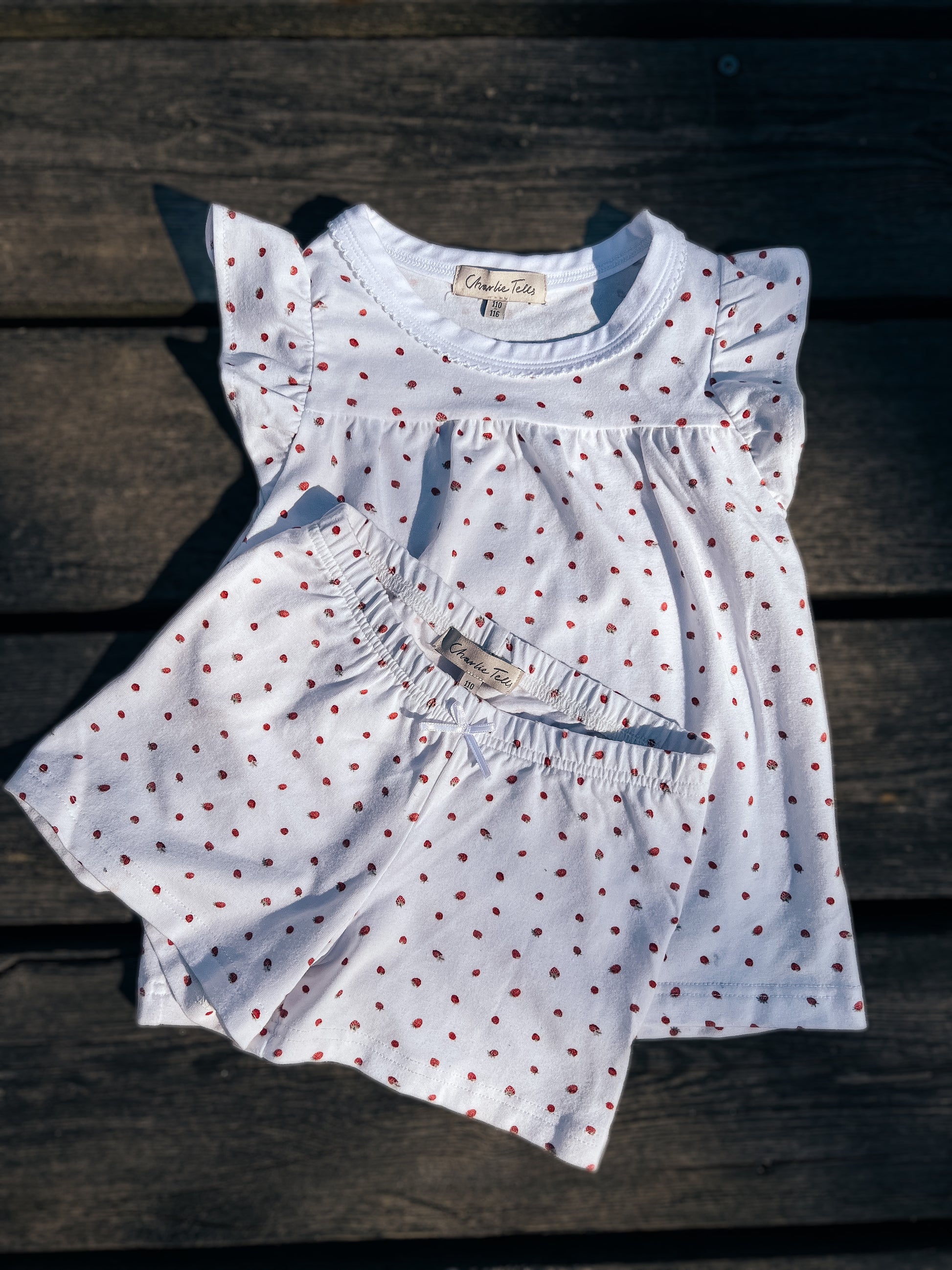 - Short sleeves with lace detail and shorts with soft flexible elastic