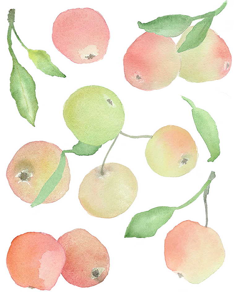 - Handmålat print i akvarell med äpplen