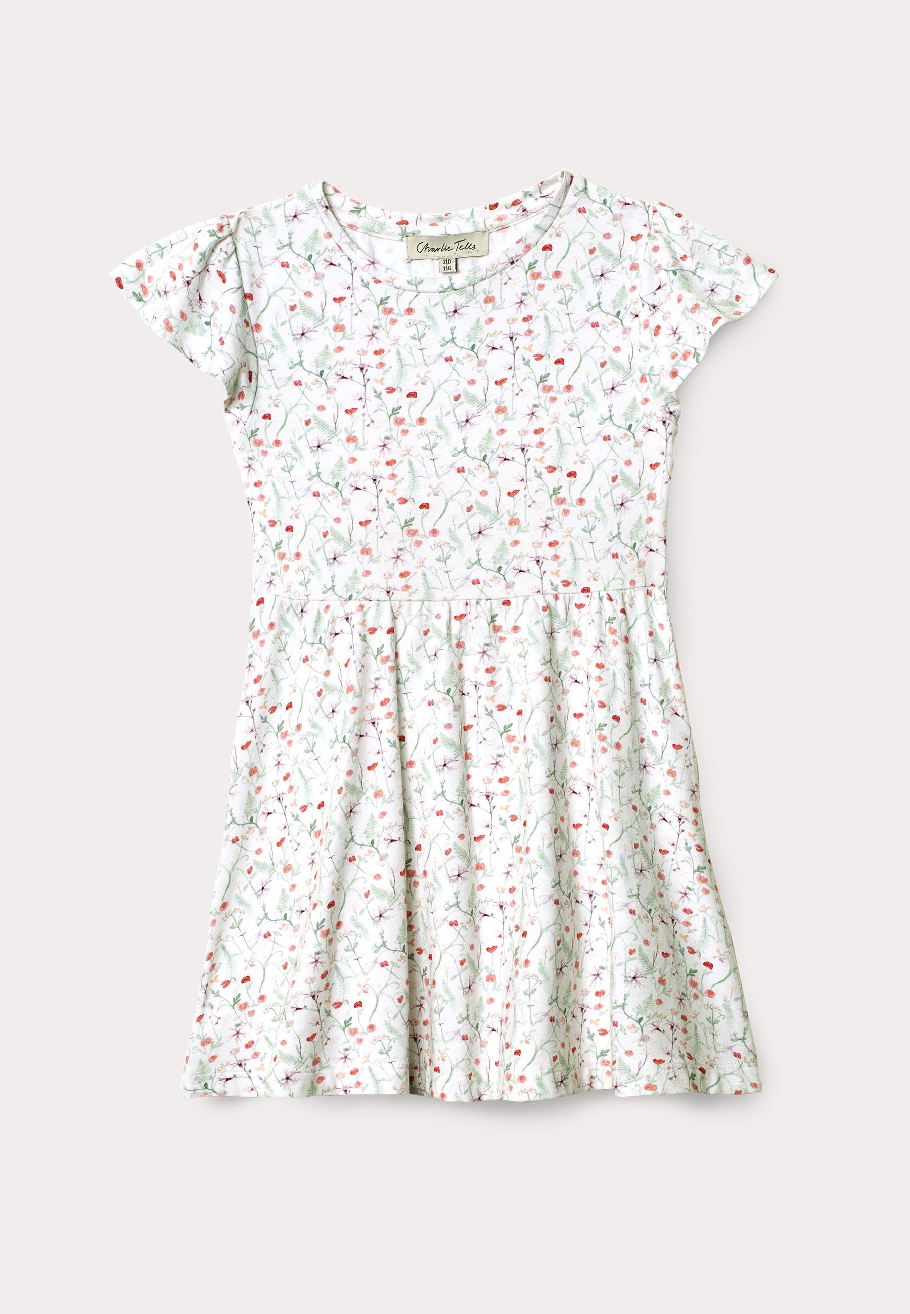 - Sommarklänning i trikå med liten fjärilsärm och avskuren midja med rynk.